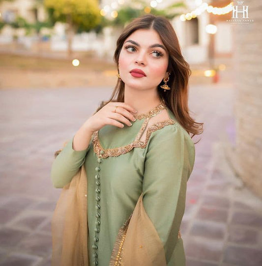 Beautiful Pista colour Double decker suit 3 pcs